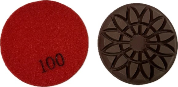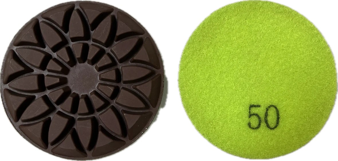 Resin bonding grinding pads with Velcro backing for fine concrete polishing.